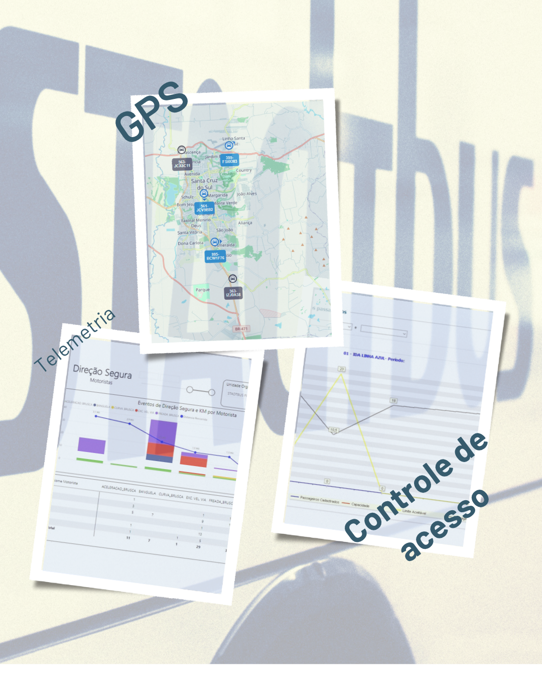 Controle de Acesso – Através da leitura do crachá (Chip) do colaborador/passageiro em uma leitora (RFID) permite o controle dos embarques e desembarques, relatórios de acompanhamento para otimização constante da taxa de ocupação dos veículos.
